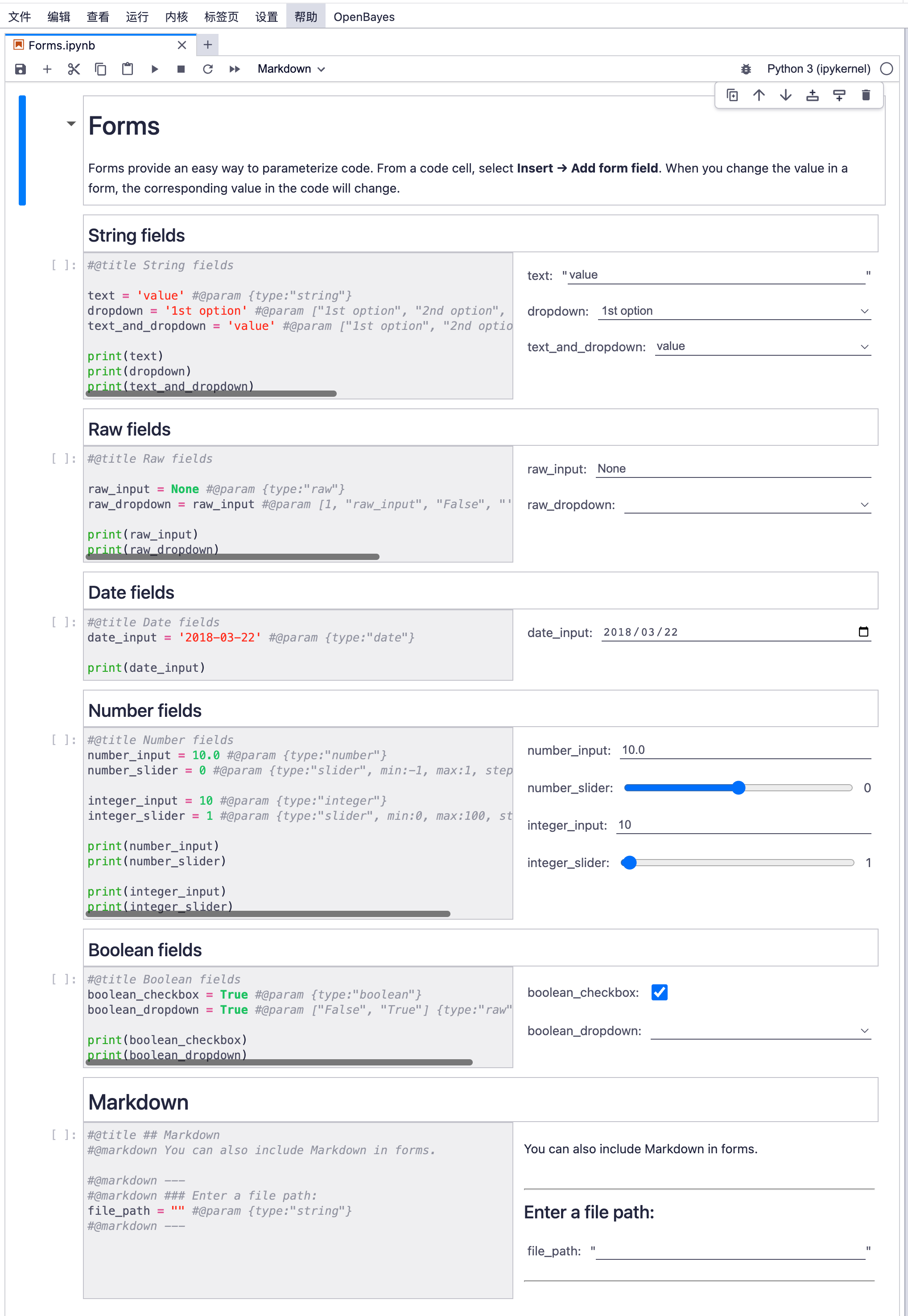 以下是来自 Colab 官方的表单,在 OpenBayes Jupyter 工作空间中的渲染效果: