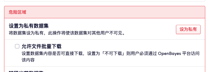 如果勾选「允许文件批量下载」其他用户则可以将整个数据集以压缩包的形式进行下载,如下所示对比勾选「允许文件批量下载」与否的效果: