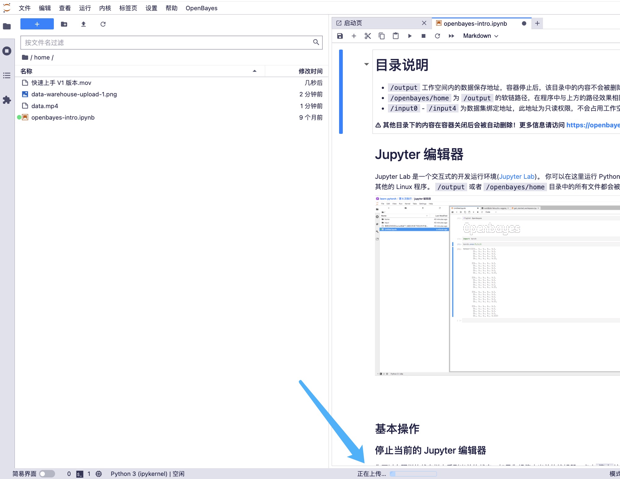 - 在已经运行起来的「Jupyter 工作空间」进行数据上传