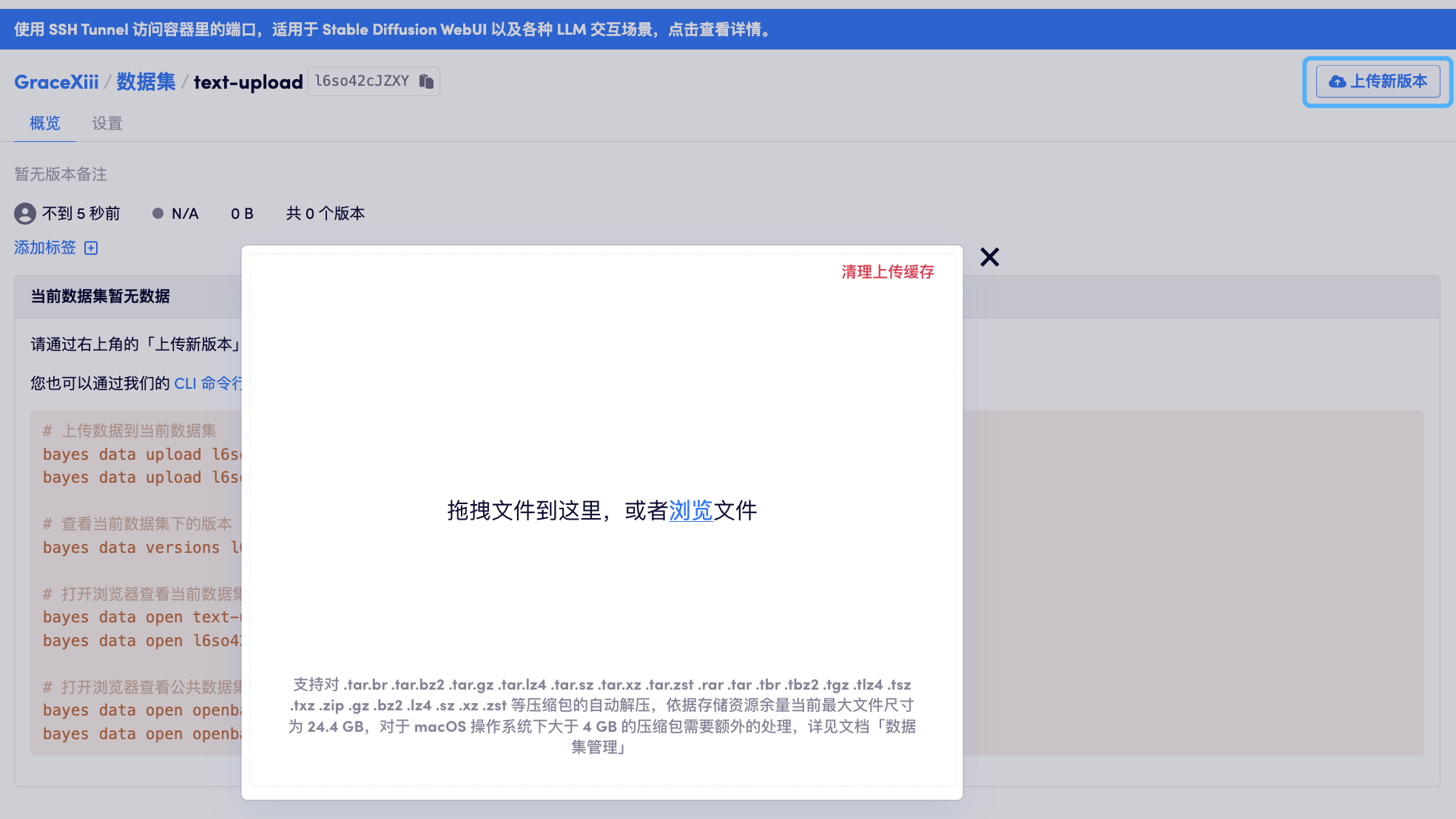 - 使用 OpenBayes「数据仓库」中的「上传」功能
