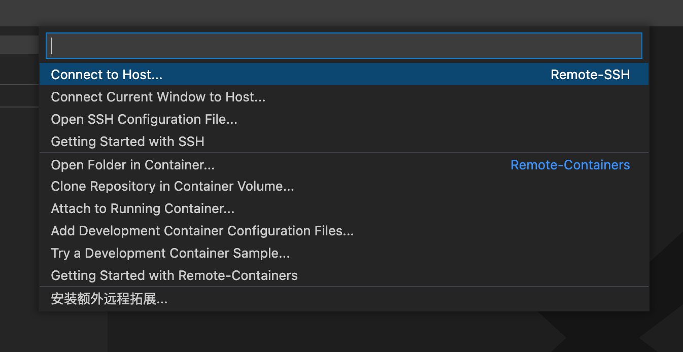 在命令面板选择「Connect to Host...」并回车。在下拉框滚动到最底部,看到「Add New SSH Host..」,点击即可添加新的 SSH 连接。