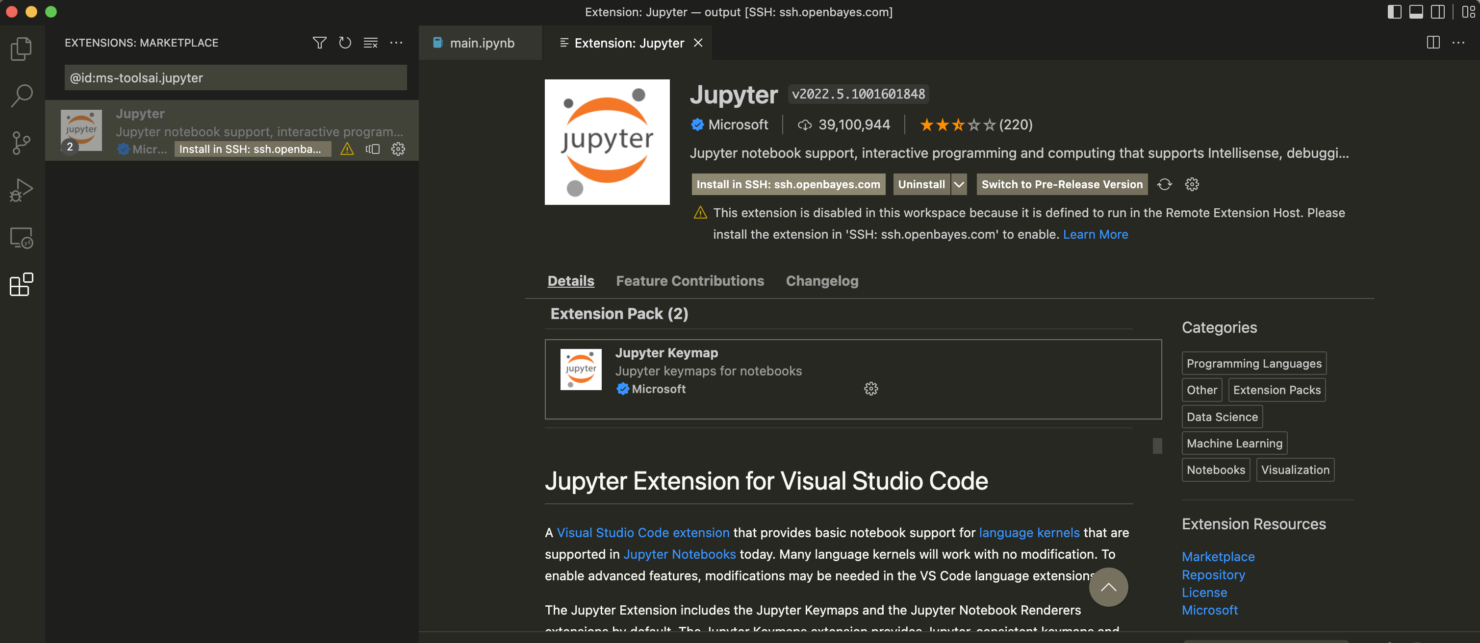 在 ssh 远程登录的情况下,如果你需要在容器内执行 .ipynb 文件,需要安装相应的插件。