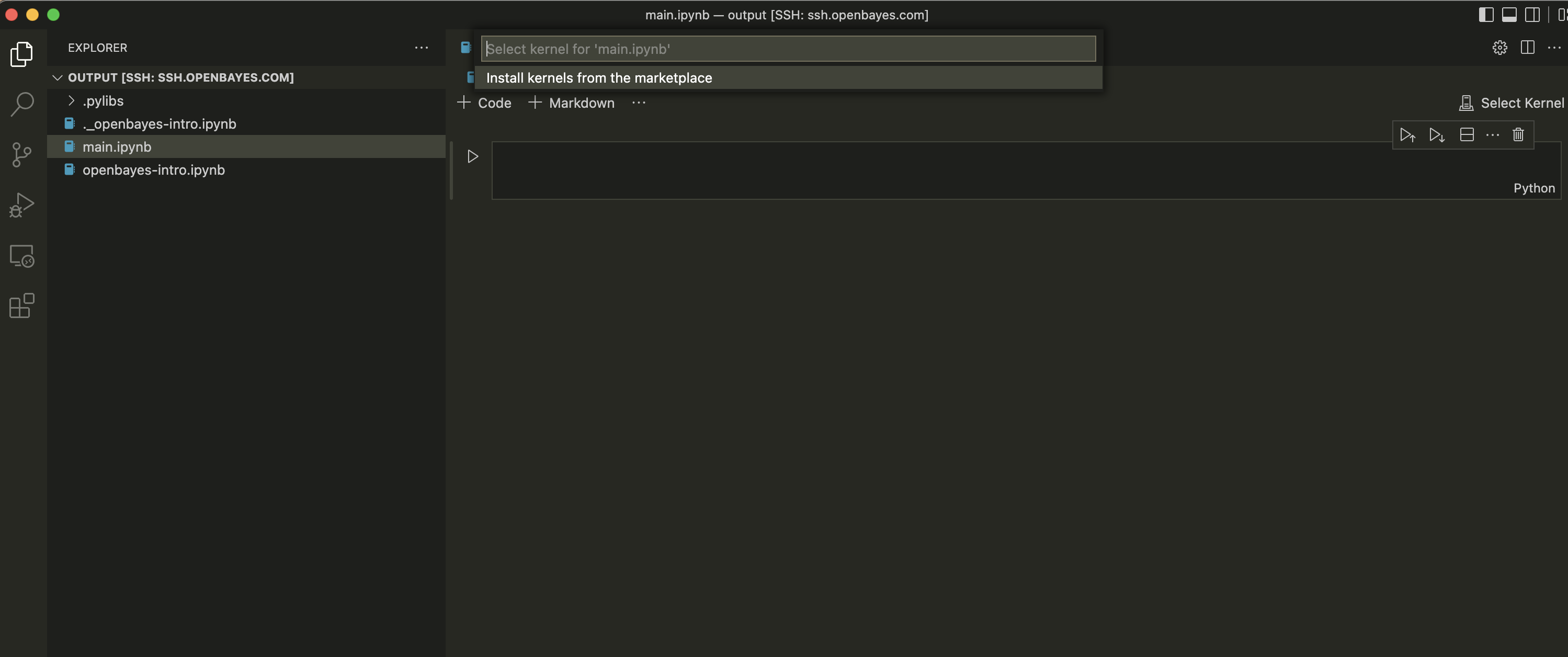 如果是通过 SSH 远程连接运行中的 Jupyter 环境,首先请阅读 VS Code 相关文档 Remote Development using SSH 了解 VS Code 对这方面的支持。并安装相应的插件。