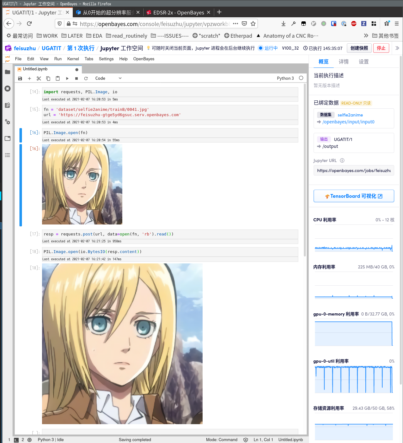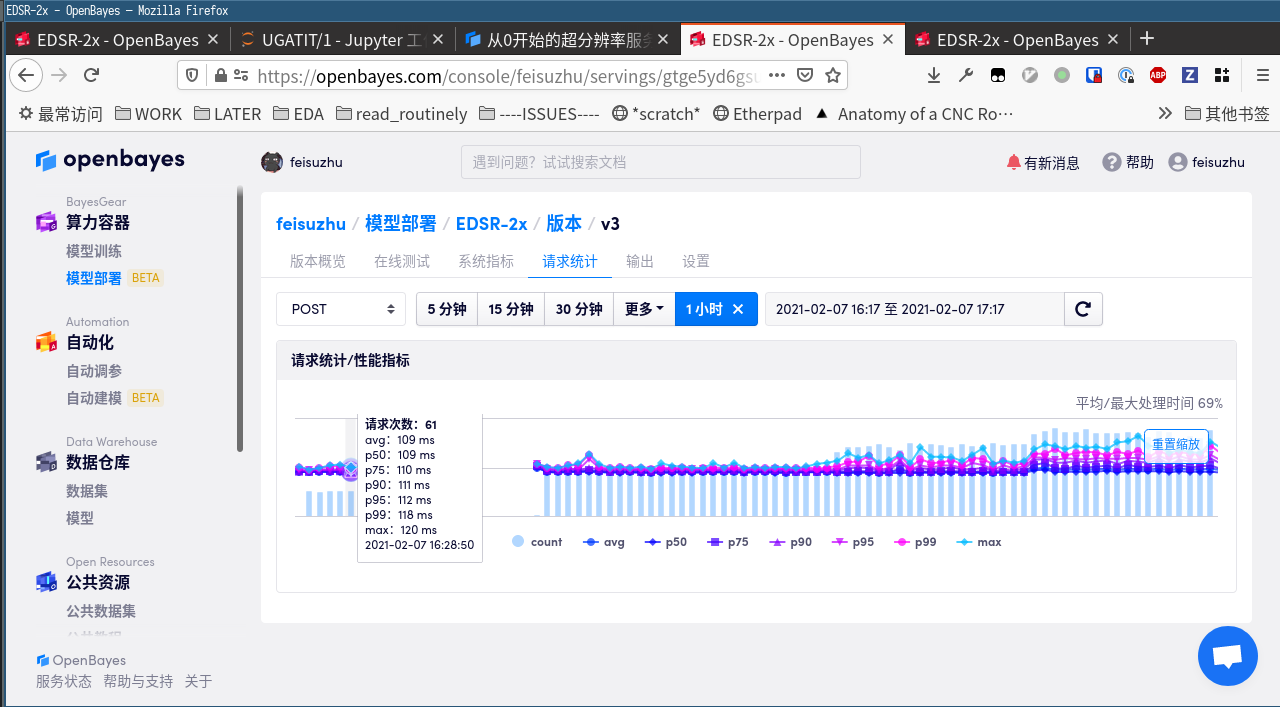 然后多开几个 Notebook,并行地向服务发送请求,再次观察。