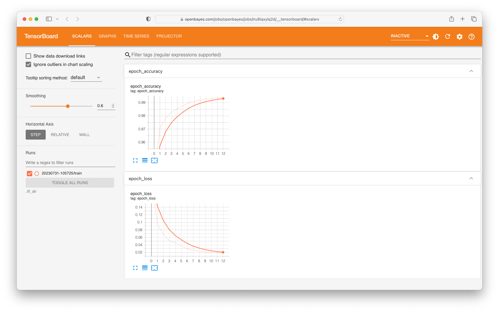 点击「TensorBoard 可视化」可以通过 TensorBoard 查看执行中的模型信息。