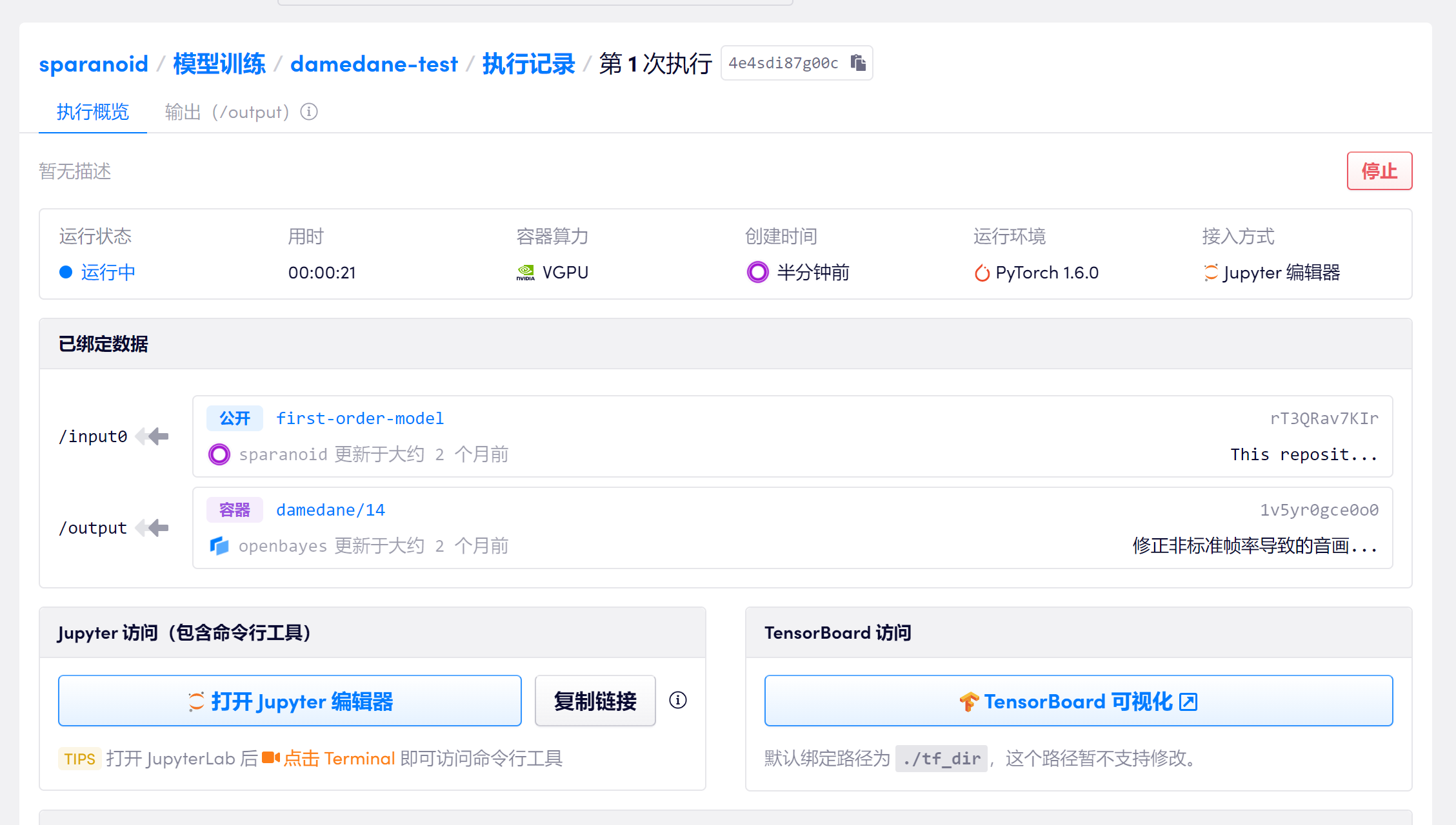 然后稍等片刻,等运行状态变为运行中时,就可以点击页面下方的打开 Jupyter 编辑器: